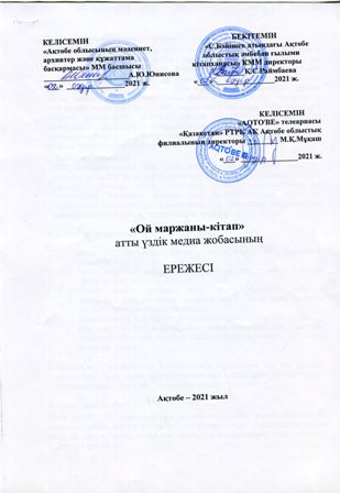 Құрметті оқырмандар! «Бір ел – бір кітап» акциясы және «Қазақстандағы балалар мен жасөспірімдердің кітап оқуын қолдау жылы» аясында өскелең ұрпақтың кітап оқу мәдениетіне деген қызығушылығын арттыру мақсатында «AQTO'BE» телеарнасымен бірлескен «Ой маржаны-кітап» атты үздік медиа жобасына қатысуға шақырамыз!